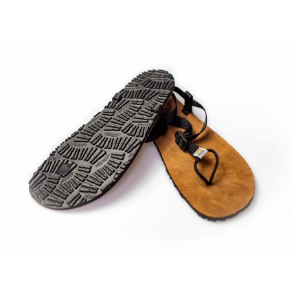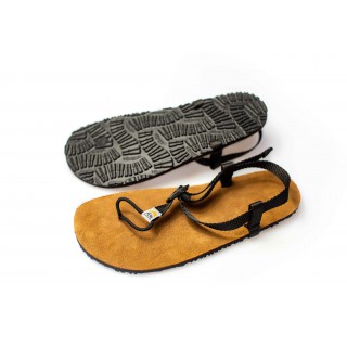 Model ten charakteryzuje jednolita warstwa 8mm podeszwy Vibram pokryta wyściółką skórzaną. Dzięki połączeniu podeszwy o grubości 8mm z wyściółką skórzaną otrzymujemy bardzo komfortowe sandały biegowe. Miła i przyjemna w dotyku wyściółka skórzana nadaje stopie poczucie lekkości i elastyczności Skóra zamszowa świetnie zdaje egzamin podczas wielogodzinnych aktywności, dlatego model ten świetnie sprawdzi się podczas długich dystansów oraz całodziennych wędrówek. Dzięki wyściółce skórzanej otrzymamy duży komfort podczas letnich gorących dni. Skóra świetnie absorbuje pot i nie nagrzewa się od słońca. Dzięki 8mm podeszwie pokrytej wyściółką nie musimy obawiać się kamieni, szutru i innych nierówności. W przypadku tego modelu mamy świetne połączenie komfortu i minimalizmu.